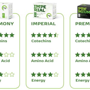 Kar zadeva kakovost in okus, Matcha Imperial stoji med vrstama Harmony in Premium. Njena aroma je bolj prefinjena kot pri Harmony, hkrati pa intenzivnejša od Premium. Odlikuje jo bogatejša vsebnost aminokislin, ki zagotavljajo dolgotrajno energijo, in večja količina antioksidantov, ki pomagajo pri zaščiti telesa pred oksidativnim stresom. Imperial je odlična izbira za vsakodnevno uživanje, saj ponuja popolno ravnovesje med gladkostjo, močjo in hranilno vrednostjo – idealna za vse, ki želijo izkusiti pravo umetnost pitja matche.
