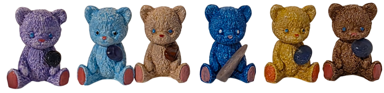 Mali medvedki s kristali ali brez so drobni simboli topline, varnosti in notranjega miru. V naročju lahko držijo kristal, ki predstavlja zaščito, podporo in nežno energijo za vsakdan.
