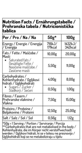 Narejen je s pravim maslom in olivnim oljem, brez margarine, brez maltitola in brez soje. Porcijsko pakiranje pa zagotavlja svežino in priročnost, naj bo na poti, v šoli, službi, doma ali po vadbi.